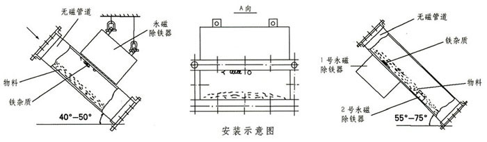RCYA管道永磁除鐵器包括無(wú)磁管道和永磁鐵兩部分,專(zhuān)用于對(duì)封閉管道內(nèi)非磁性物料的除鐵,永磁除鐵器內(nèi)部采用高性能稀土強(qiáng)磁材料組成復(fù)合磁系。具有體積小、磁力大、重量輕、除鐵干凈、方便、無(wú)能耗、使用壽命長(zhǎng)等特點(diǎn)。適合沒(méi)有輸送皮帶,只能提供下料溜槽的場(chǎng)合。當(dāng)散狀物料經(jīng)過(guò)管道式永磁除鐵器時(shí),鐵雜物被高場(chǎng)強(qiáng)的永磁鐵所吸附,清除鐵雜質(zhì)時(shí),打開(kāi)管道專(zhuān)用門(mén)將雜質(zhì)取除。該設(shè)備適用于含鐵量較少的場(chǎng)合,含鐵較多的場(chǎng)合應(yīng)選用自卸式除鐵器。主要應(yīng)用于水泥、化工、煤炭、塑料、耐火材料、建材、造紙等行業(yè)的下料管道中清除鐵雜物。